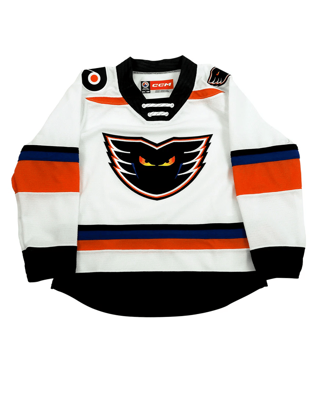 The CCM Quicklite Lehigh Valley Phantoms Premier White Jersey is made of high-quality two-way stretch pique fabric and has solid mesh inserts for ventilation.