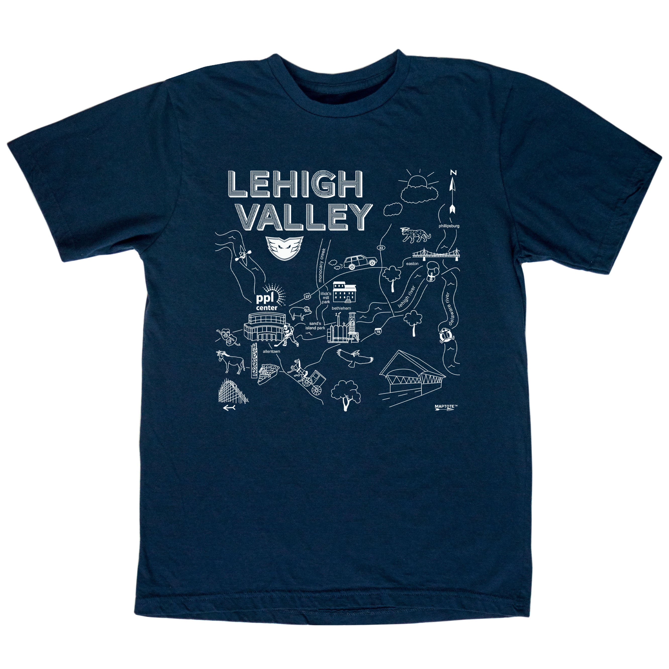 Its always a good time in the Lehigh Valley, home of the Lehigh Valley Phantoms! Lehigh Valley, Pennsylvania. includes Allentown, Bethlehem & Easton, where we have the best of the best of sports, activities, events, nature and much more. Get and gift your ultra soft unisex Lehigh Valley Map tee today.