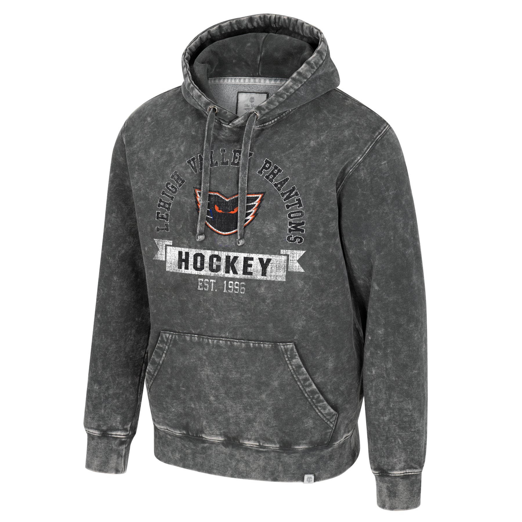 ODDBODY MARBLE FLEECE (CHARCOAL), COTTON / POLYESTER (MIDWEIIGHT PLUSH FLEECE WITH MARABLE WASH), DETAILS: Kangaroo Pocket Rib Cuffs & Bottom Band Gunmetal Grommets Flat Cotton Drawcords w/ Fold over Tips DISTRESSED WASHED OUT PRINT
