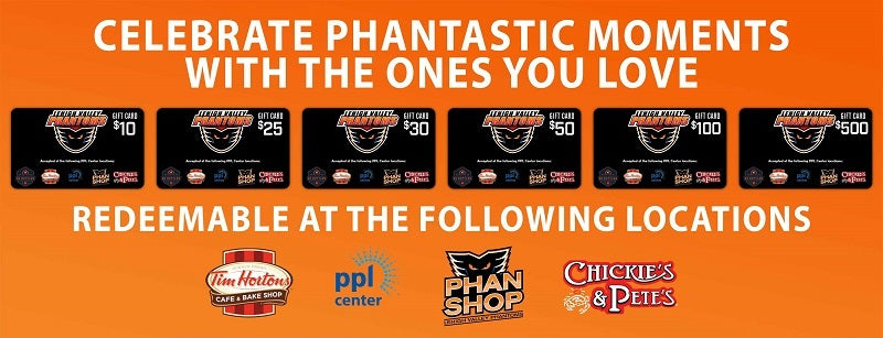 Shopping for someone else but not sure what to give them? Give them the gift of choice with a Lehigh Valley Phantoms Phan Shop gift card. Use your gift card at our