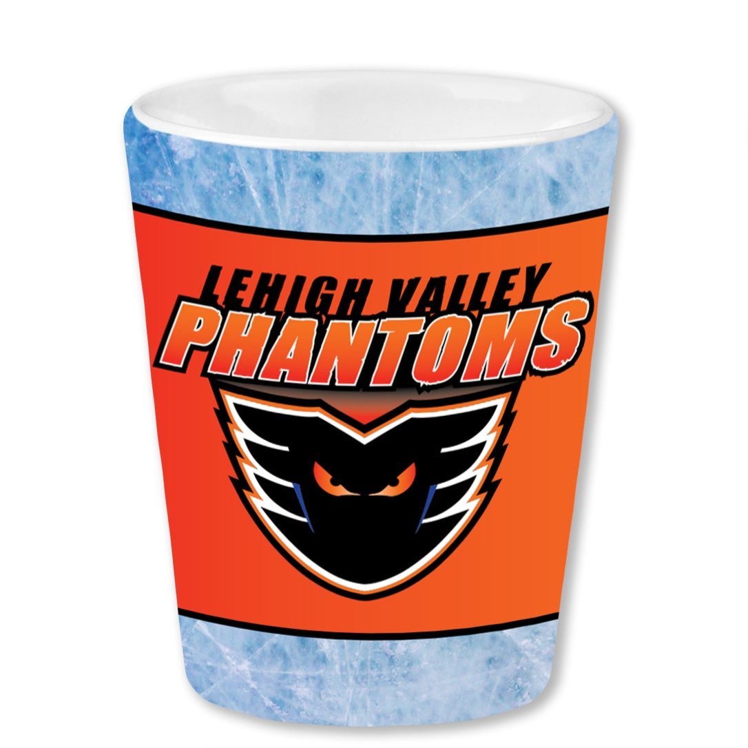 Our ceramic On Ice Shot Glass is emblazoned with our playful ice design and Phantoms colors and logo. This shot glass is perfect to bring out for game day festivities, is crafted with care & holds up to 2 ounces of any beverage. This shot glass is a perfect gift for every occasion.